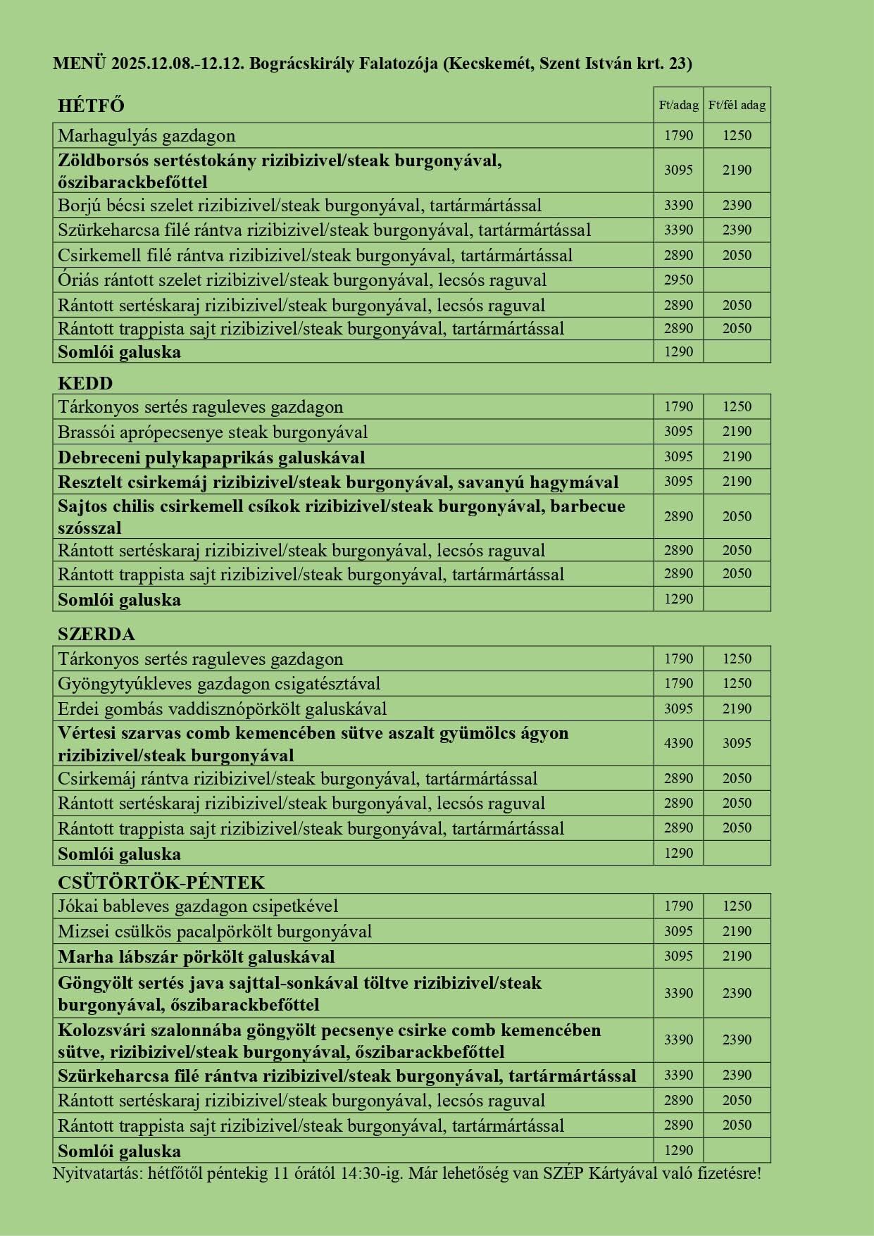 🕐 Nyitva minden nap 11:00 – 14:30