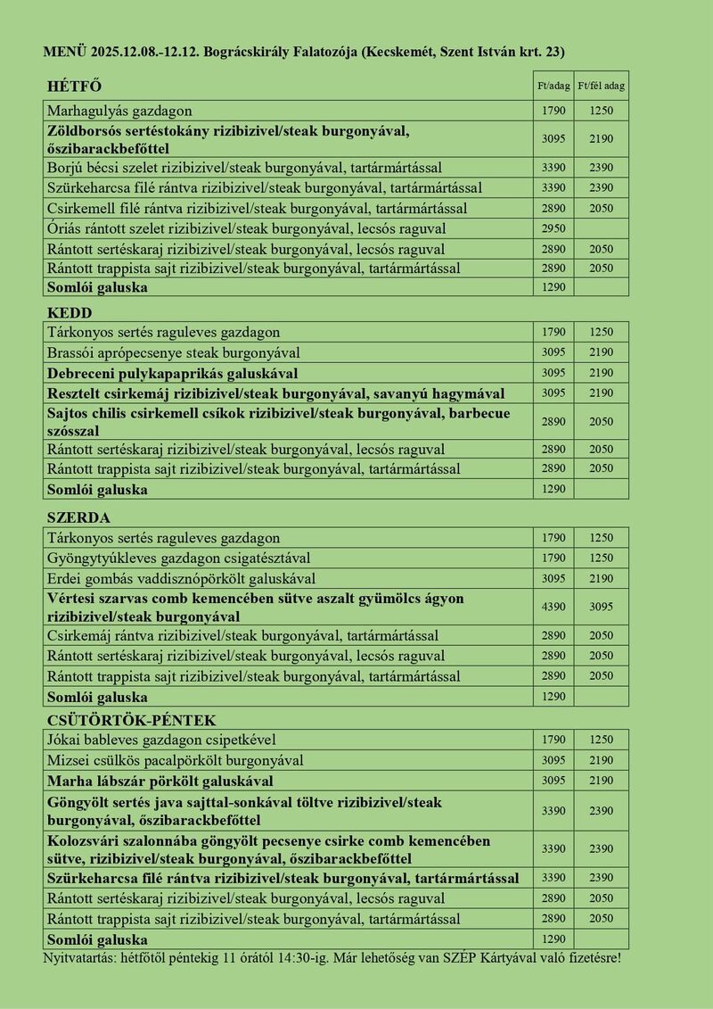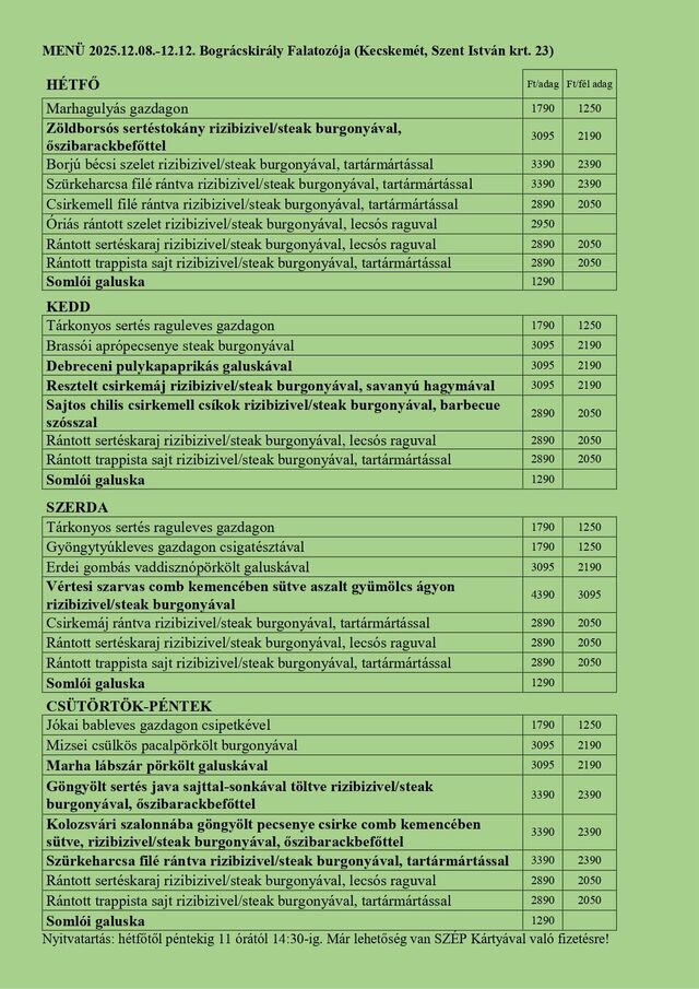 🎁 Próbáld ki ételeinket. –Minden napra más- más finomságokkal készülünk nektek, verhetetlen áron!